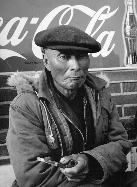 The little town of Yellowknife is north of the Polar Circle.There were a few First Nation Canadians hanging about in front of the only store.There was just the right background for this picture.